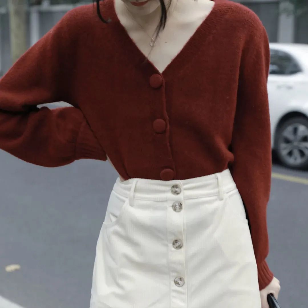 v领开衫毛衣
