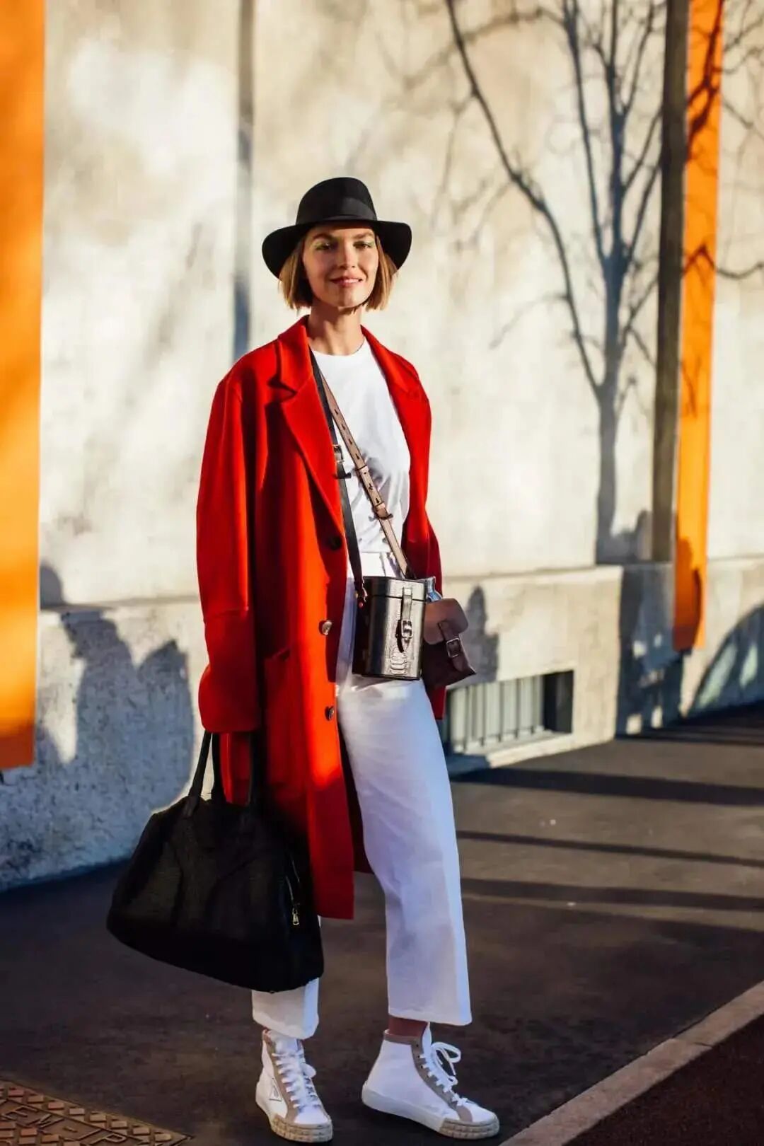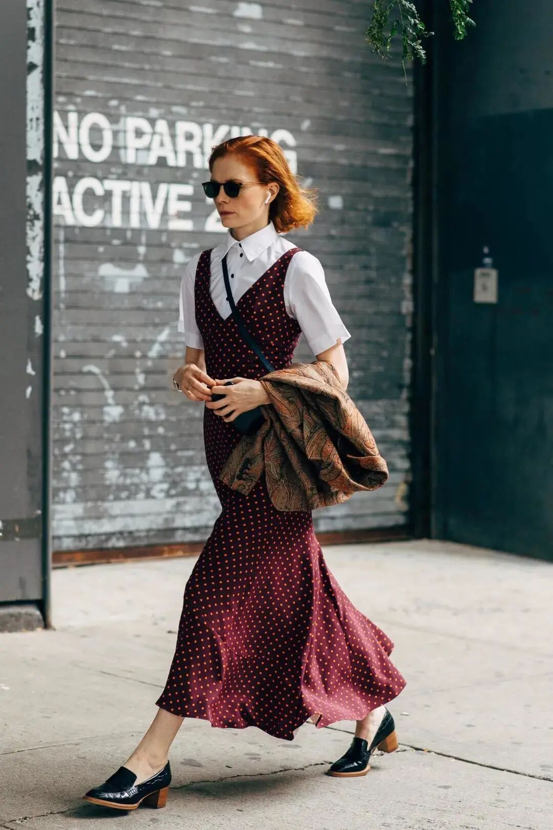 桑巴红浓烈但不会过于高调,热情中带着稳重,和裙子、针织组合,很容易穿出力量感。