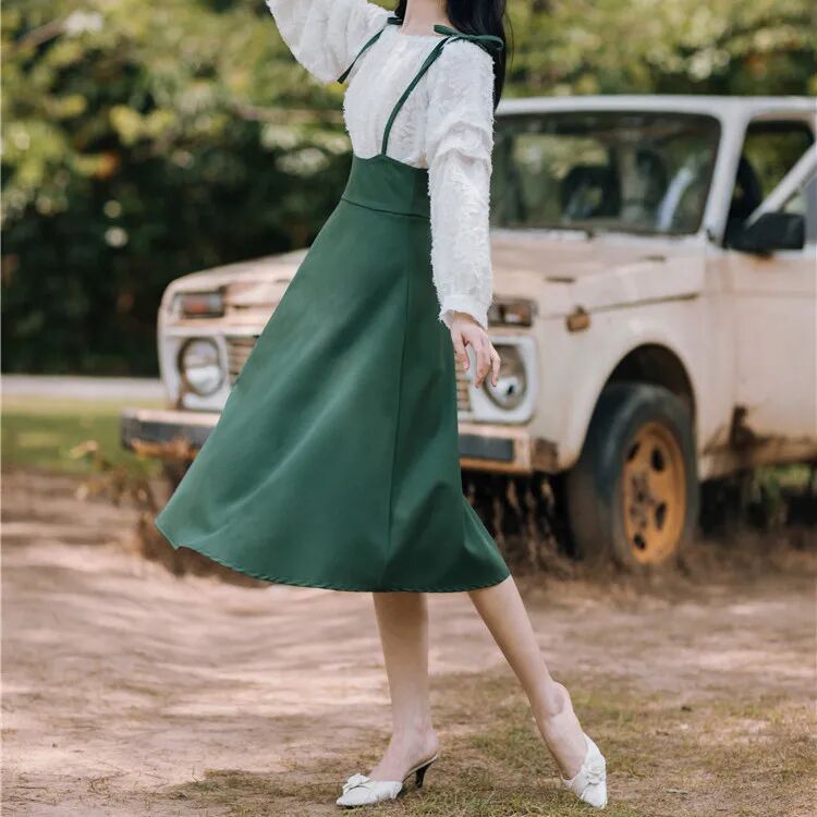 法式复古背带裙