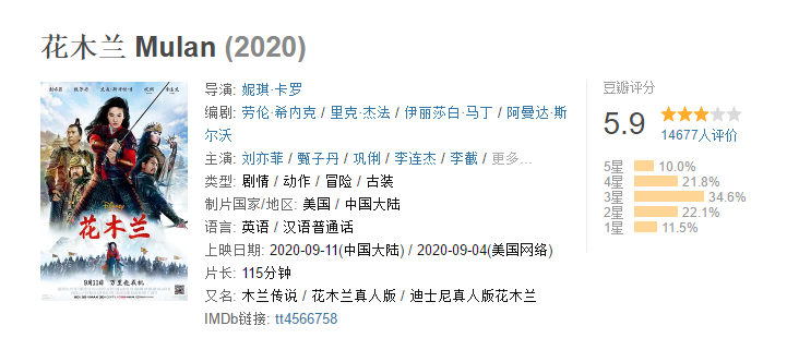 Hello集美们,最近神仙姐姐刘亦菲主演的《花木兰》已经在海外上映了 ,普遍评价不错,但是在还没在国内上映,电影却被恶意刷了低分!!!