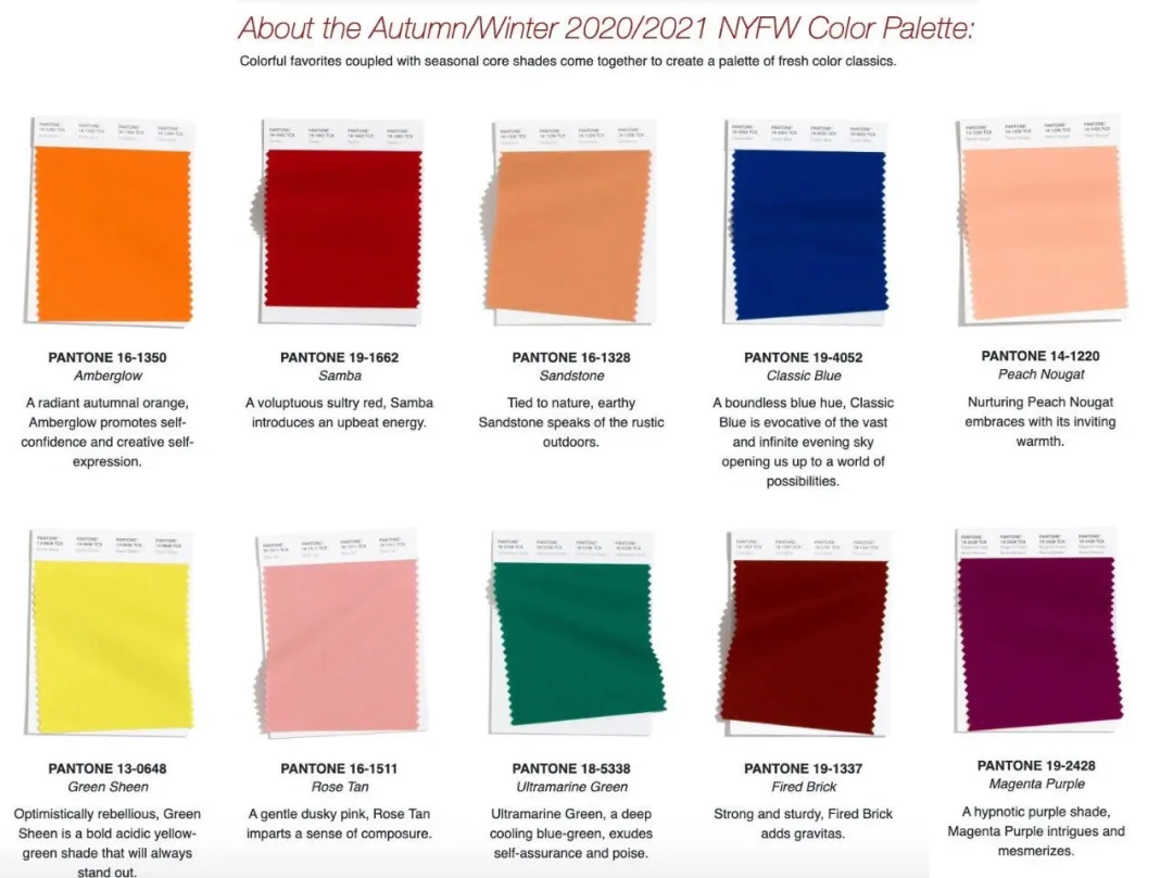 前不久的全球权威的色彩机构Pantone发布的2020年秋冬的流行色。