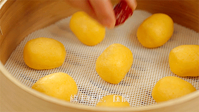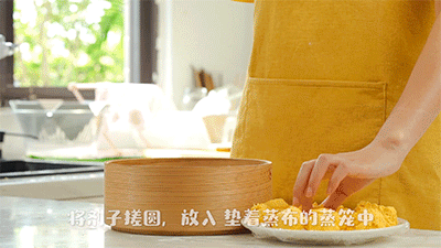 5.将面团分成每个约25g的剂子,搓圆后放入垫着蒸布的蒸笼中