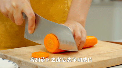 1. 胡萝卜去皮洗净切片,蒸熟蒸软
