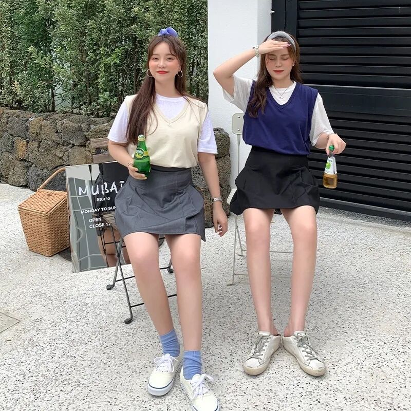 苹果型身材的优势在于纤细的双腿,所以她俩经常穿短裙,或者玩玩下半身失踪,青春又可爱~