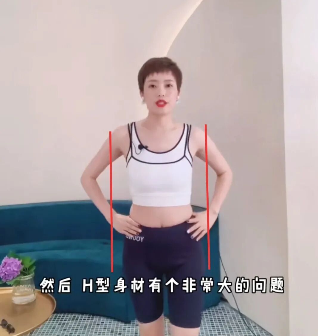 关键她是典型的H型身材:肩部和胯部同宽,腰部没有明显线条,整个人穿紧身衣时就像一个H字~