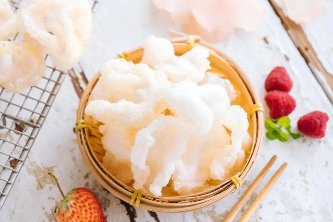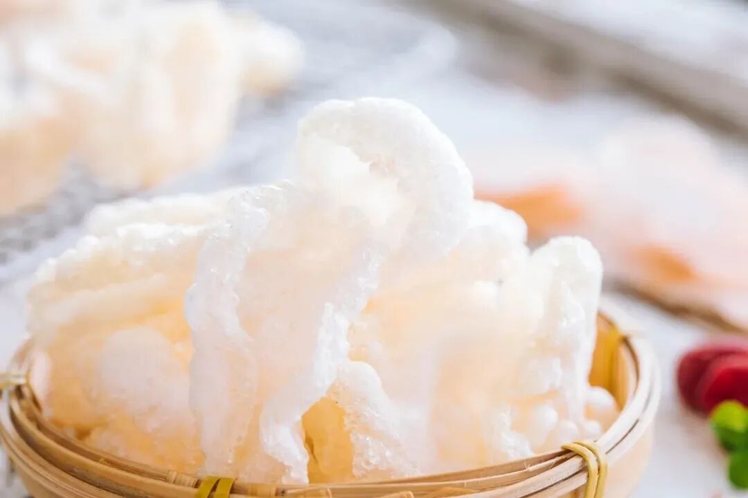 12、油温七成热约170度,放入虾片后炸至膨胀捞出控油。
