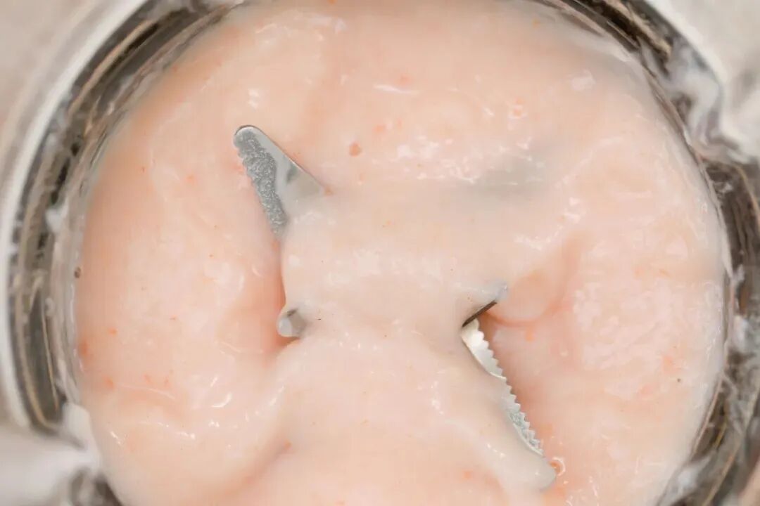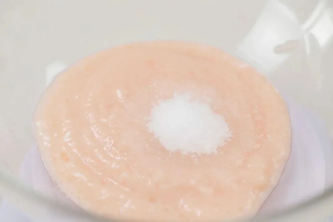 3、虾滑加5g细砂糖和3g盐拌匀。
