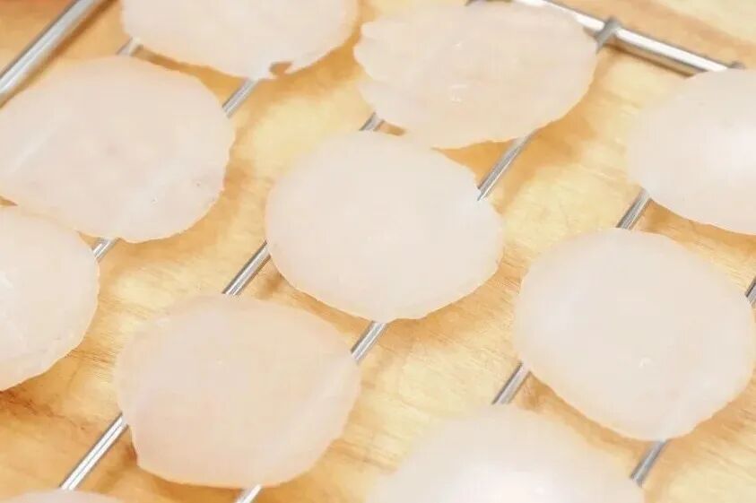 如果你圆柱形搓太粗,就可能煮不透,或者煮的时间偏短,都可能产生白心,就是没熟透,这样的虾片就膨化不起来,是不行的哦。