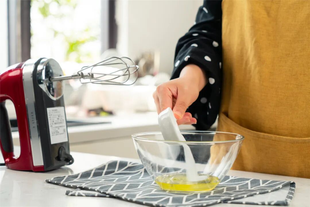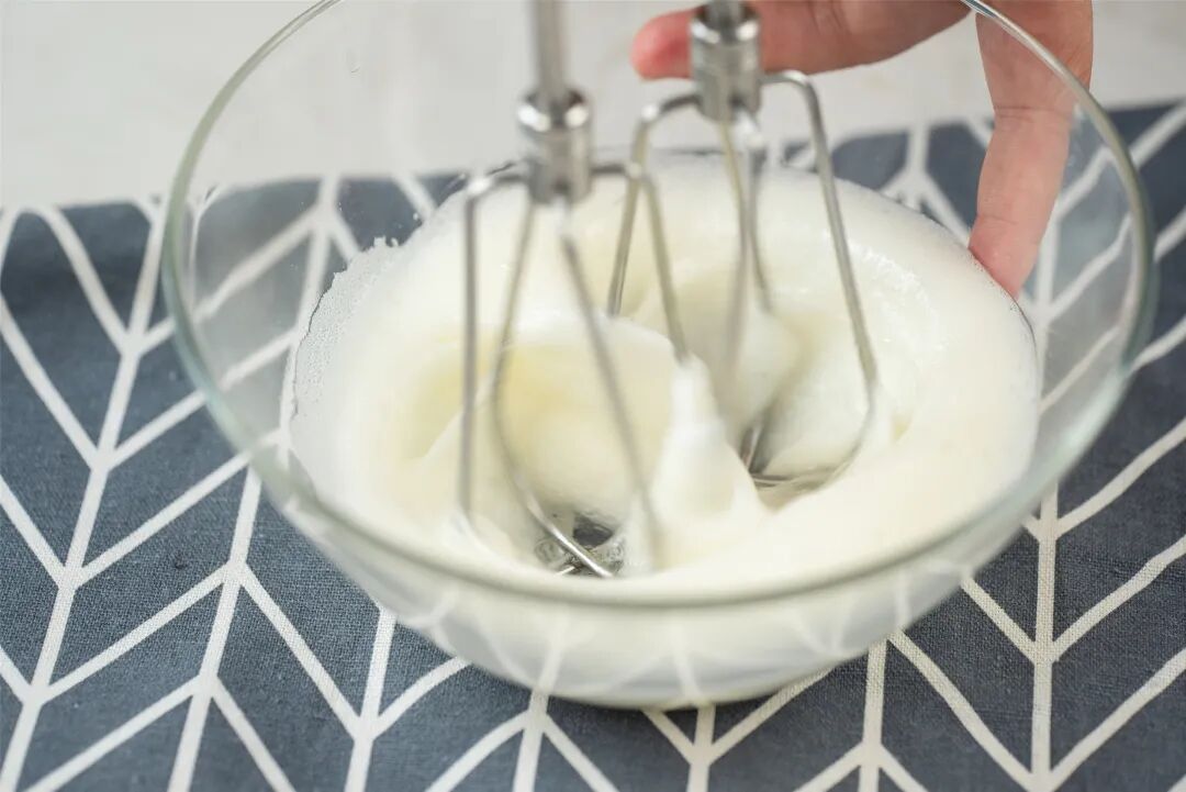 蛋白霜要打至硬性发泡状态,火烧云才好成型,不容易塌,口感也会绵密细腻。