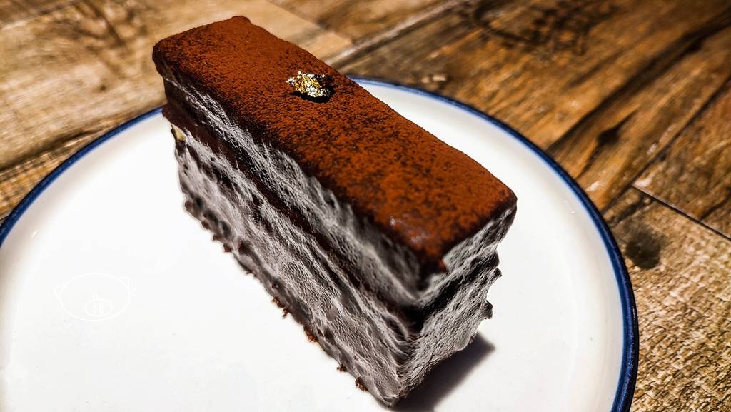 【色影识食】佛山探店|外表一层巧克力,顶部筛上可可粉,有点缀的金箔装饰