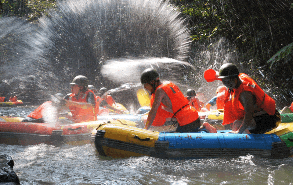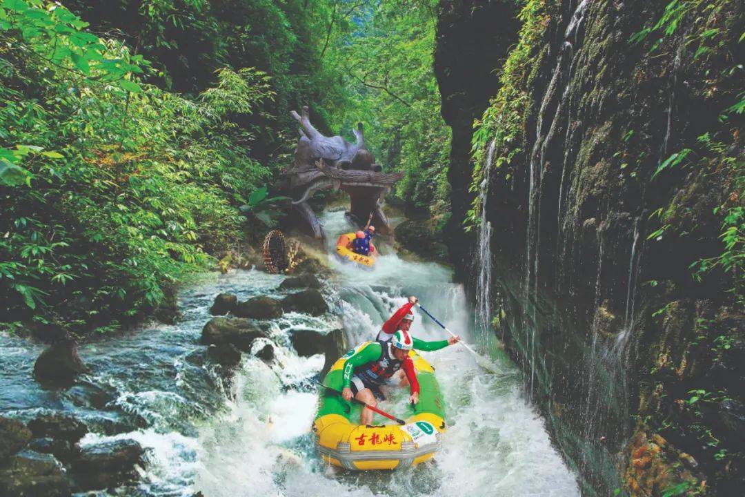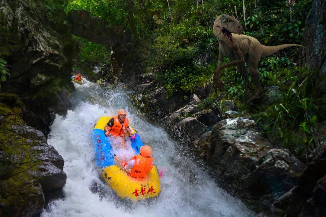 乘坐飞驰的漂流艇穿激流、越险滩、击白浪在飞舟浪尖的激荡中体验“浪尖上的过山车”的快感No.3 防晒天花板山高林密,广东唯一不用搽防晒霜的漂流古龙峡漂流河道山高林密,悬崖对峙河道被“森林隧道”重重包裹