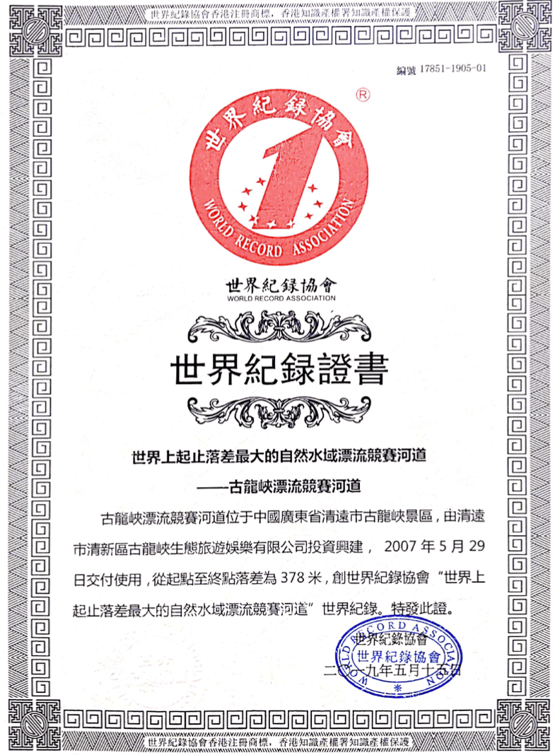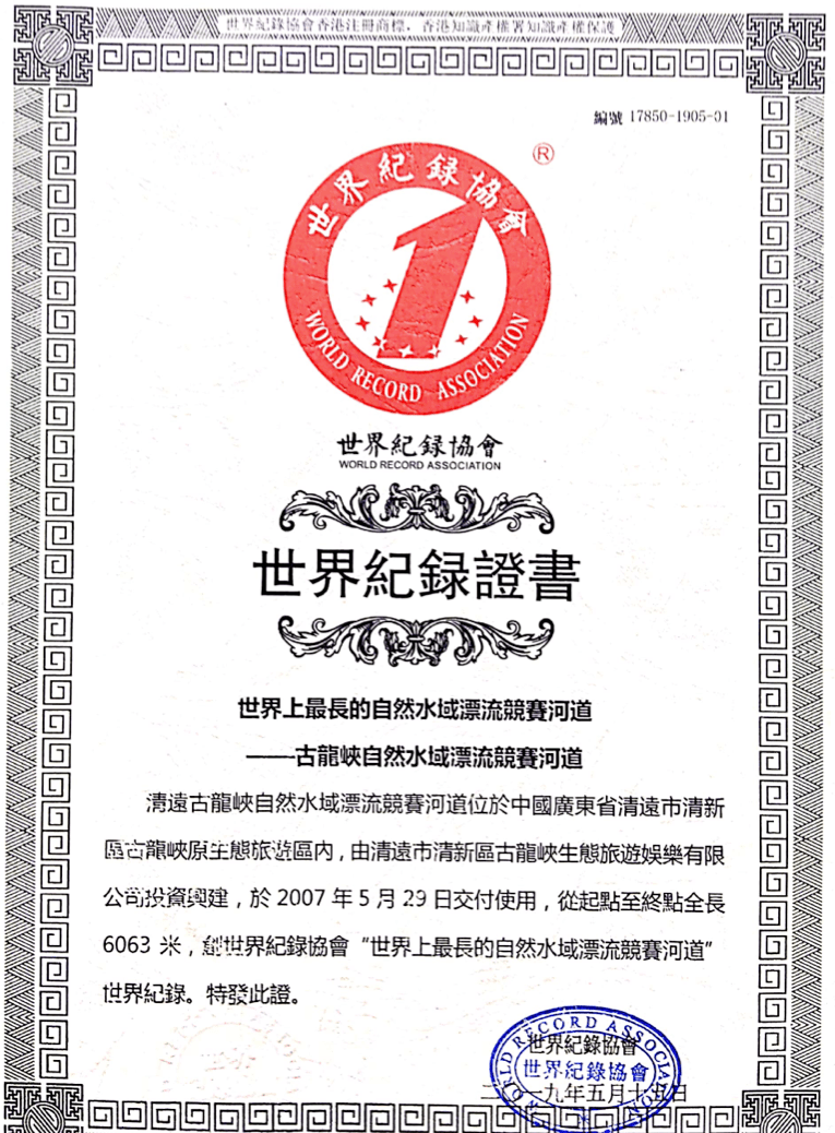 No.2 落差天花板世界落差最大的自然水域竞赛河道古龙峡漂流成功挑战「世界最长的自然水域竞赛河道」「世界落差最大的自然水域竞赛河道」两项世界纪录认证