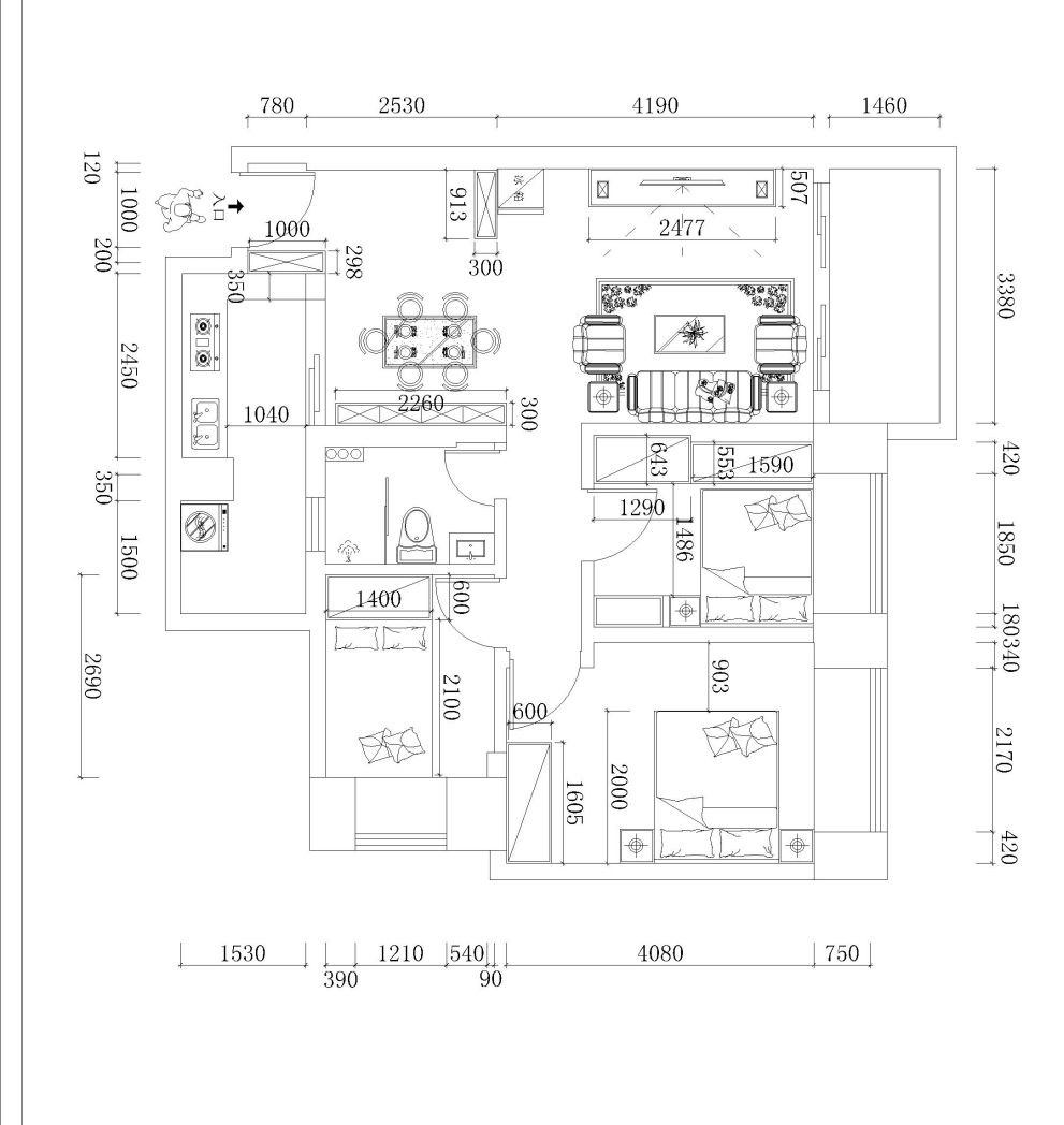 都是在不断碰撞,我自己先用卷尺量下各地方尺寸,规划下放了家具家电后的位置,更有空间感。目前收到的方案大概是这样