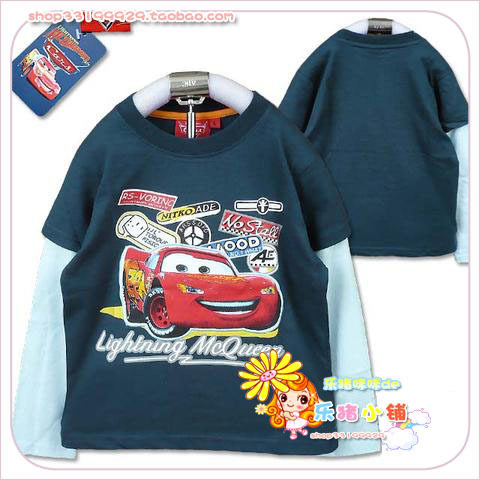 汽车总动员*闪电麦昆贴布印花假两件套长袖T恤 C1429