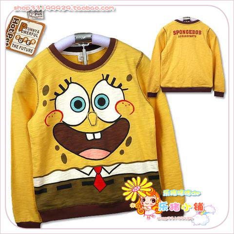 热卖秋装竹节棉黄色海绵宝宝长袖T恤C1261