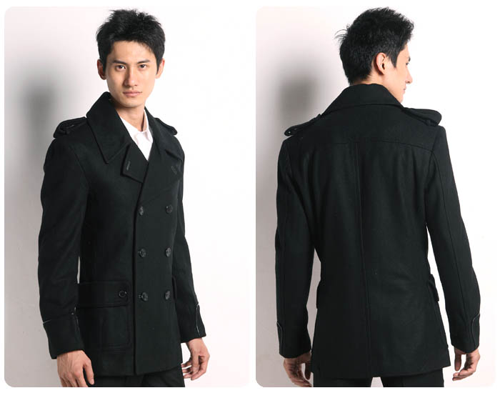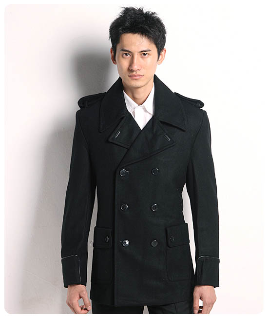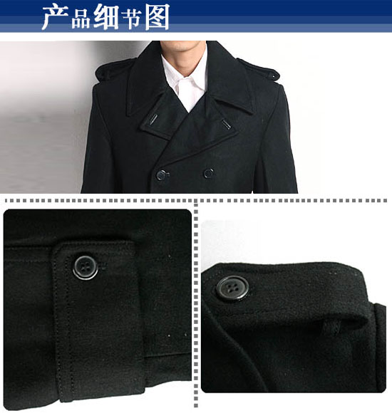 JONY WIND 08冬新款男士经典大口袋肩章双排扣尼大衣