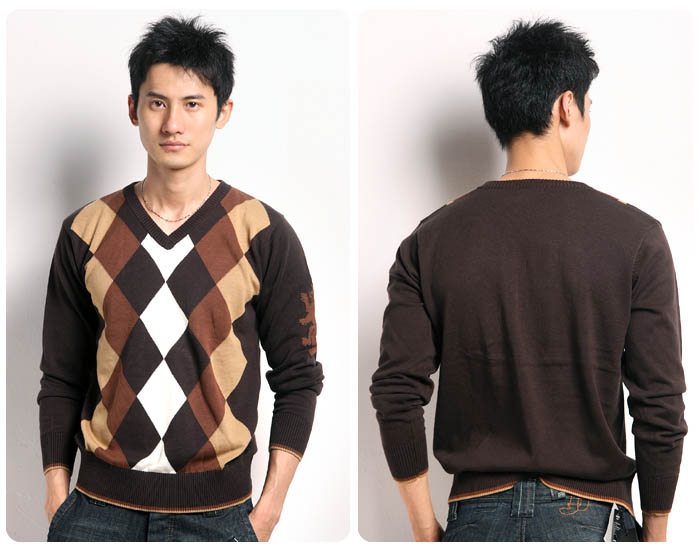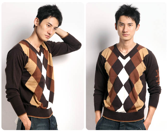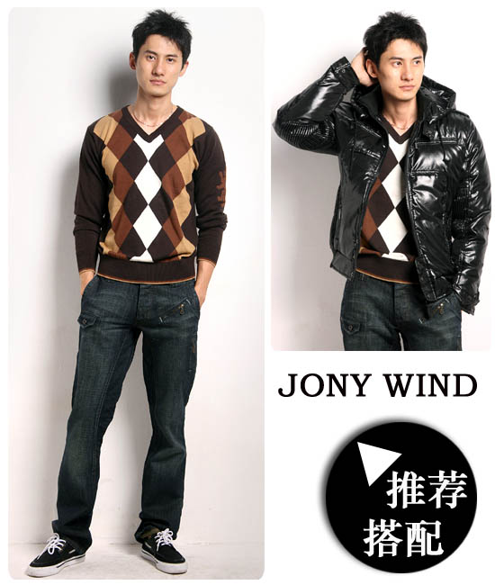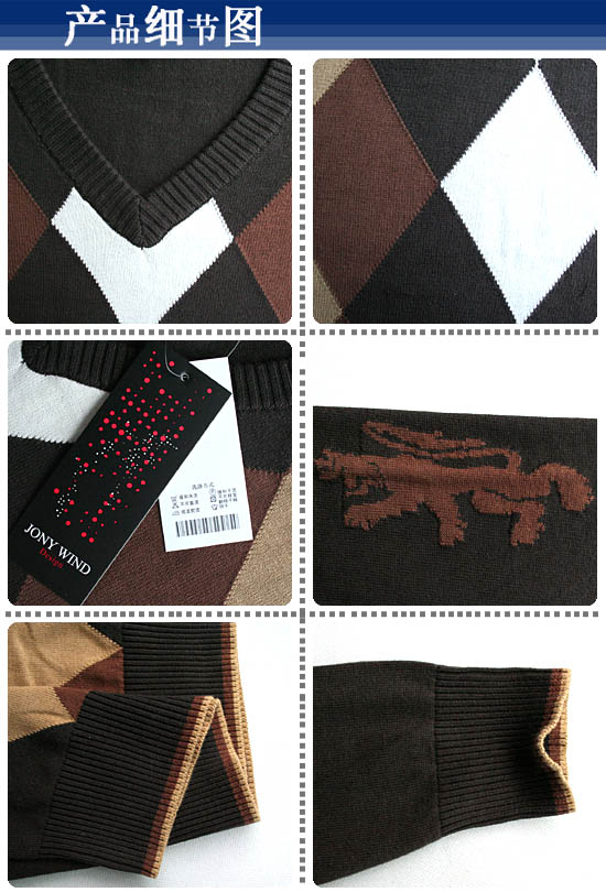 1.JONY WIND 08秋冬新款爱尔兰风情菱形格V领针织衫NN87114