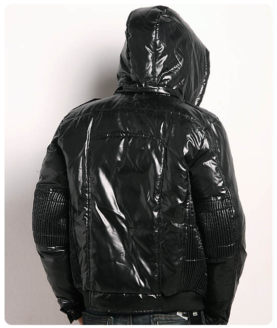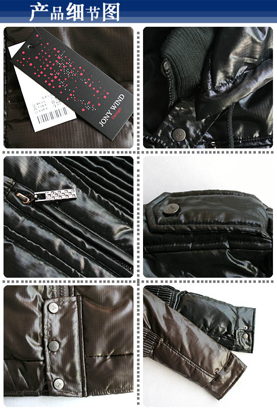 JONY WIND 08冬褶皱侧面个性三扣连帽休闲夹克羽绒服
