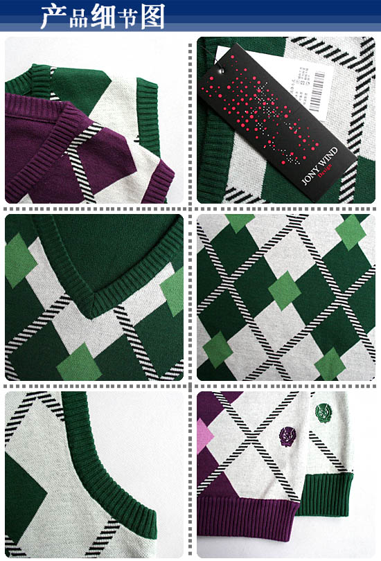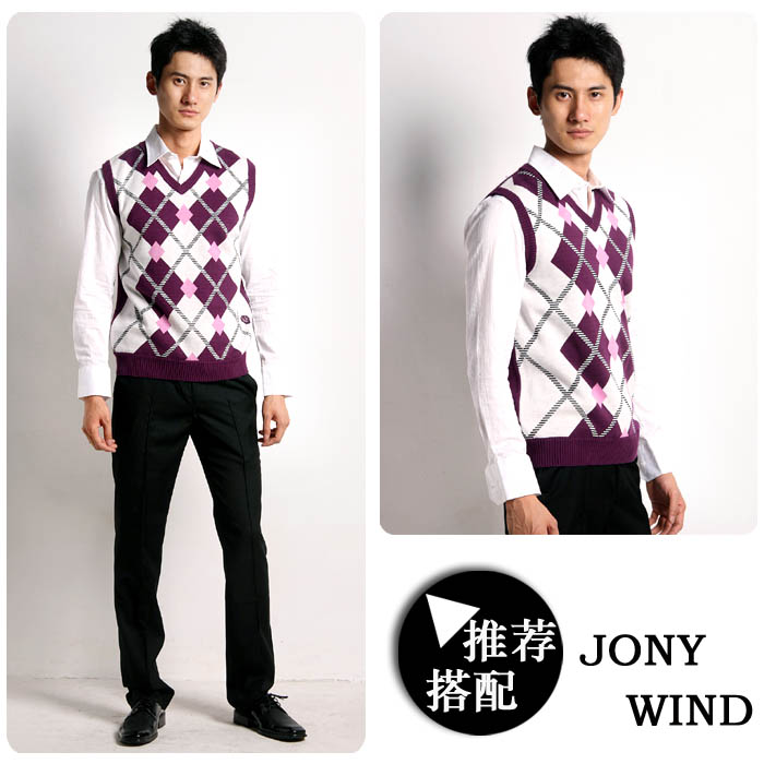 5.[特]JONNY WINND 08秋冬新款时尚苏格兰风格V领针织背心NN87214 。。市场价399元,团86元。