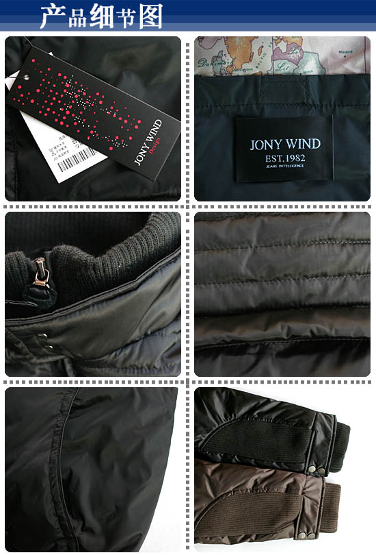 JONY WIND 08冬时尚帅气双层立领开身休闲羽绒服