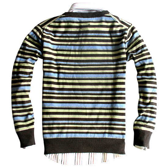 21.[特]JACK JONNES◆NN83408◆个性菱型格子后背条纹V领长袖针织衫 。。市场价399元,团88元