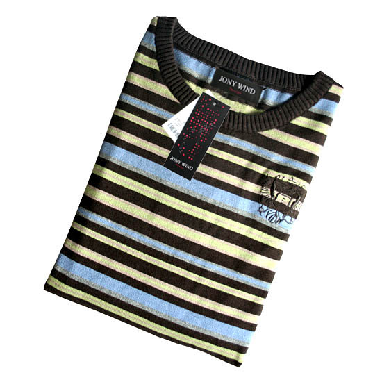 3.[特]JONY WIND 08秋冬新款双色条纹长袖圆领百搭针织衫NN85932 。。市场价428元,团84元