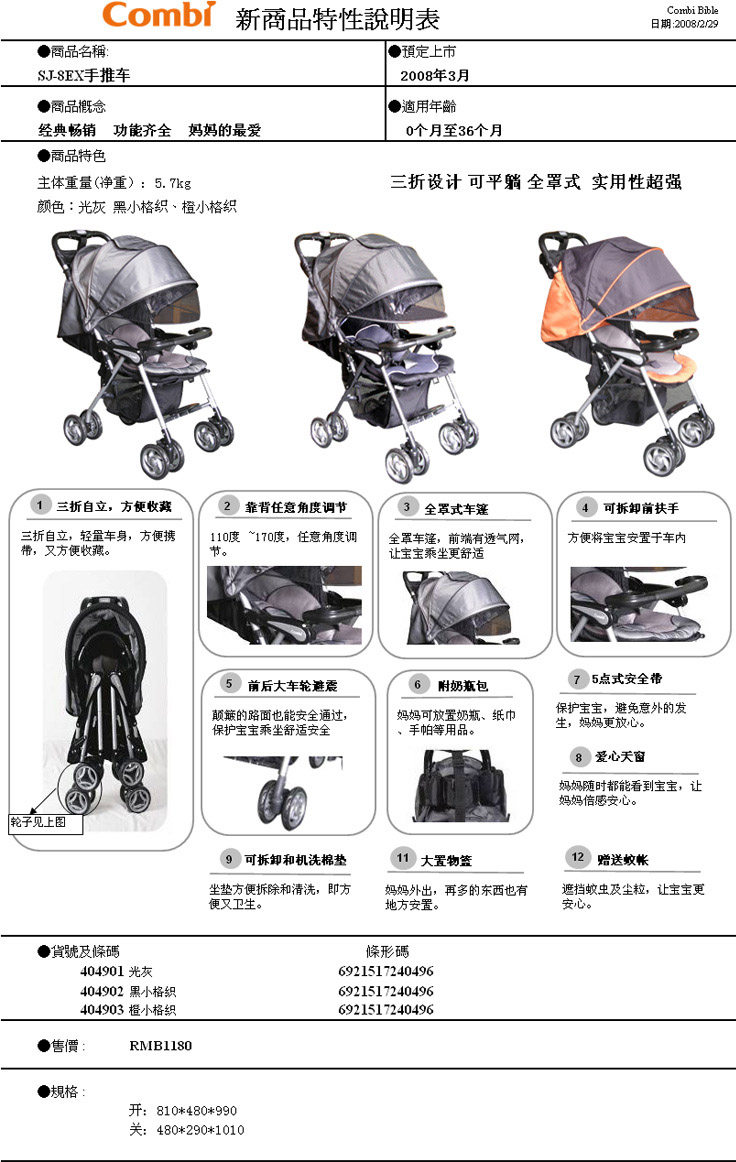 康贝推车SJ-8EX市场价1180元,团购价680元