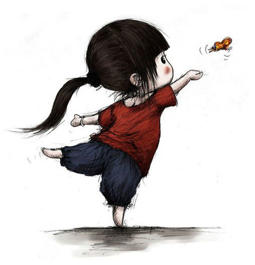 春天给她扎起小辫子,带她到郊外 抓蝴蝶。