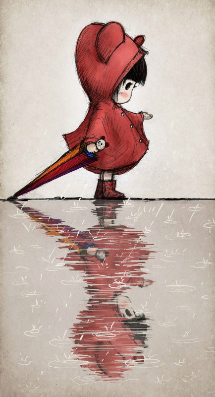 夏天给他穿上小裙子,下雨带她 到外面踩水!
