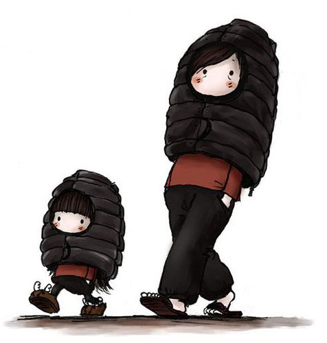冬天把她裹成一个小包子,跟她 打雪仗。
