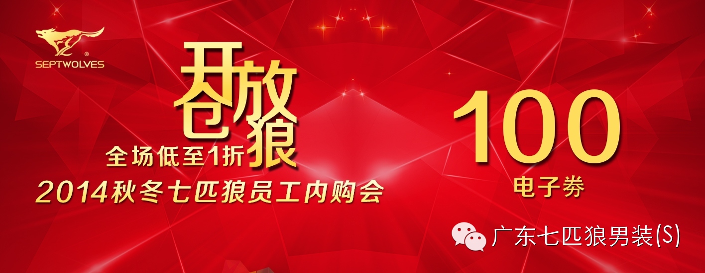 严冬来袭,有什么能把你从温暖的被窝扯出来?我能!抓紧穿上你的秋衣秋裤,来一场说买就买的旅行!!七匹狼、与狼共舞、七匹狼皮鞋皮具全场低至1折!就是这么任性!精选服装、皮包、皮带、皮鞋,只要是男人的行头我们统统都有!纳尼???折扣还不够优惠,你这个人好坏的,1折都吸引不了你,难道还要我把折上9折,往下看有100大洋电子现金券的信息都告诉你!?