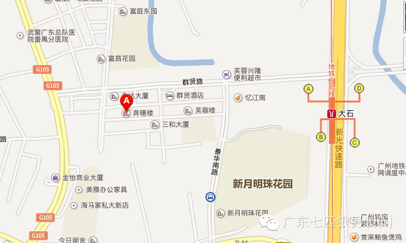 广州市番禺区大石镇群贤路富丽花园丽景园208号奔穗楼(大石家私城G座、建设银行附近)