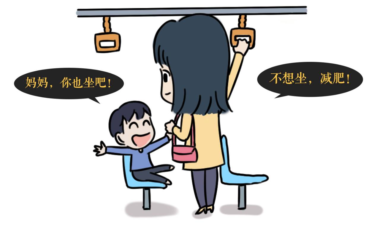 我答:“不想坐,减肥。而且我站这儿可以保护你,