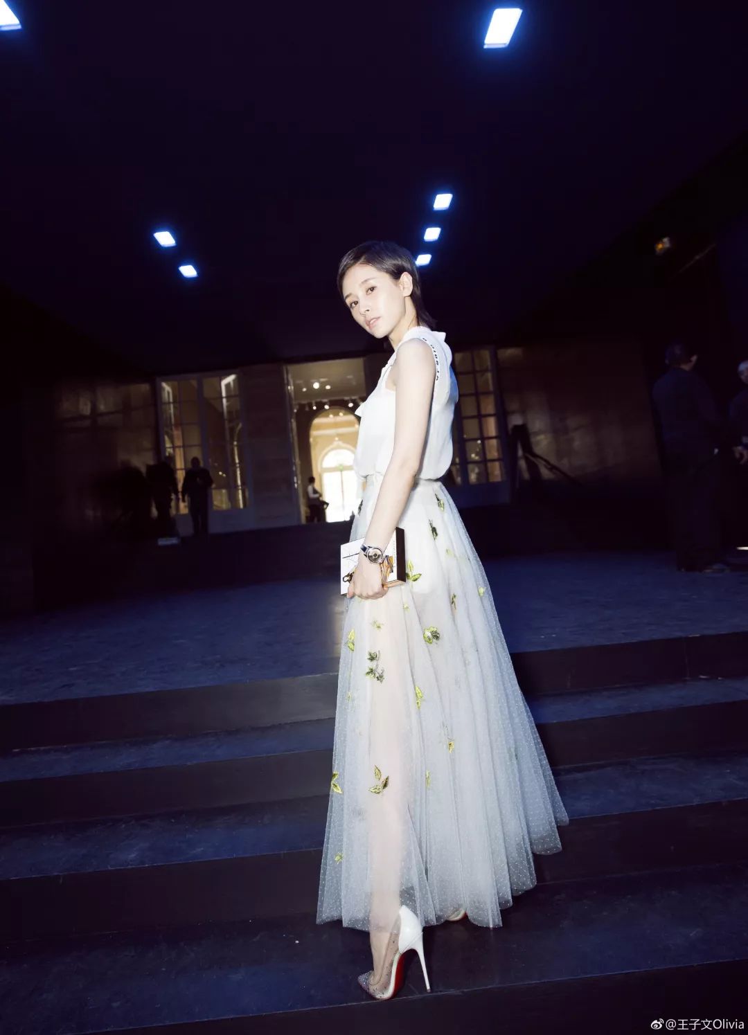 身为“小个子穿衣典范”的王子文,也有一套自己的穿衣技巧。薄如蝉翼的网纱面料触感细腻,低调纯净的白色加上奢华金色图案,看似简单的搭配,却不乏柔美优雅女人味。