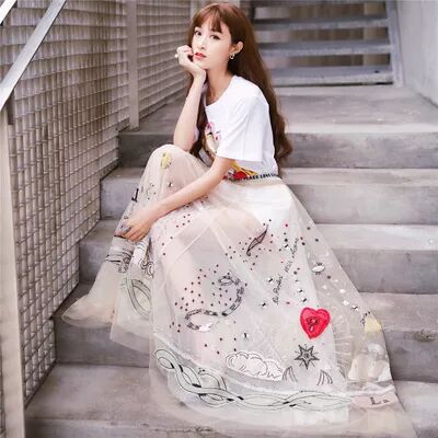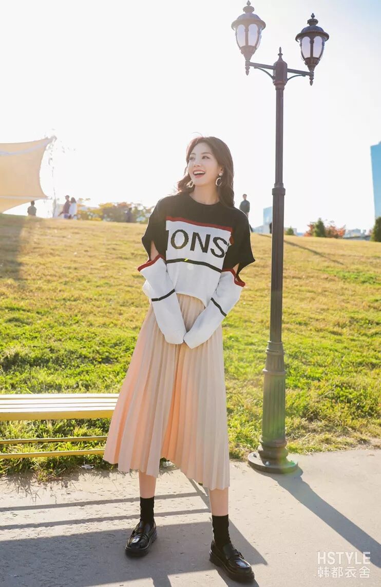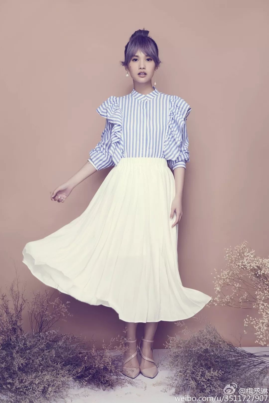 推荐大家参考同为“小个子”可爱教主杨丞琳的搭配哟,雪纺材质百褶裙,打造延伸腿部的视觉感,宽松舒适又柔美。
