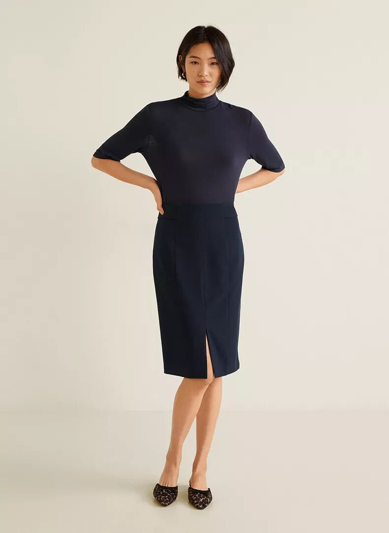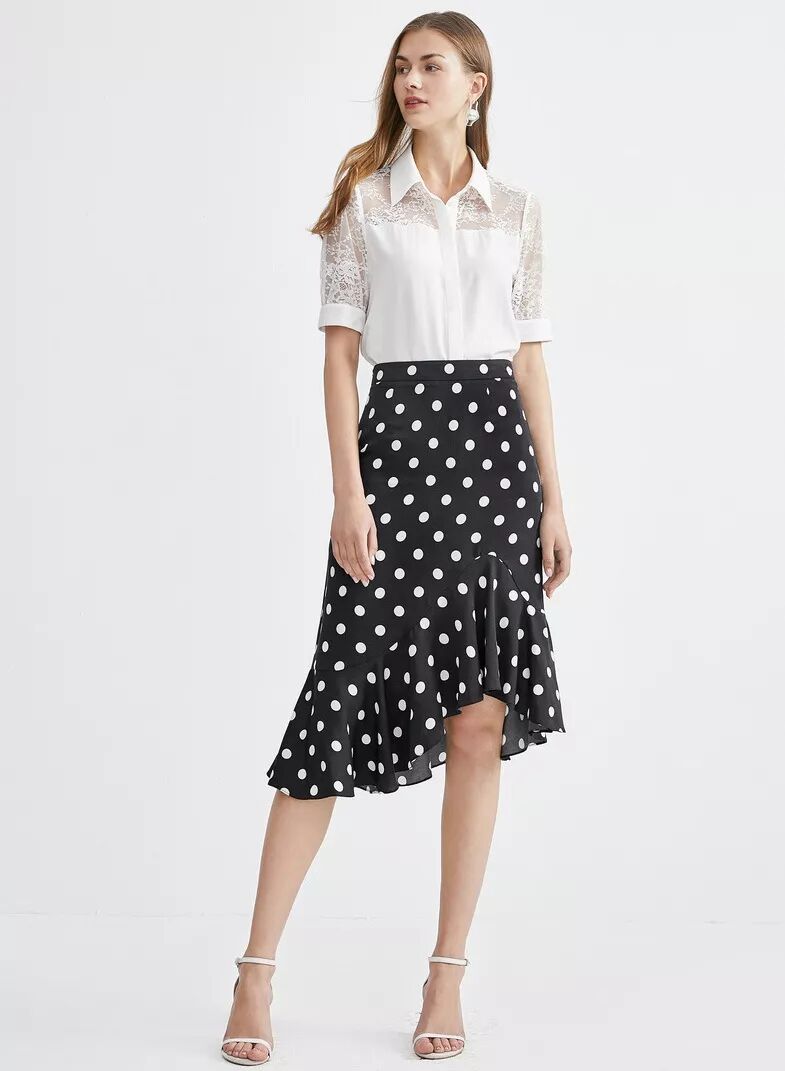 除了及膝包臀裙,像下面这种不规则及膝裙也是一个不错的选择哦。