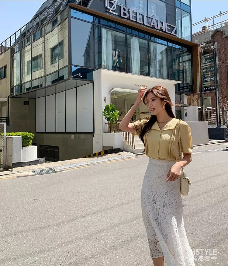 韩都衣舍 高腰鱼尾蕾丝裙  | |