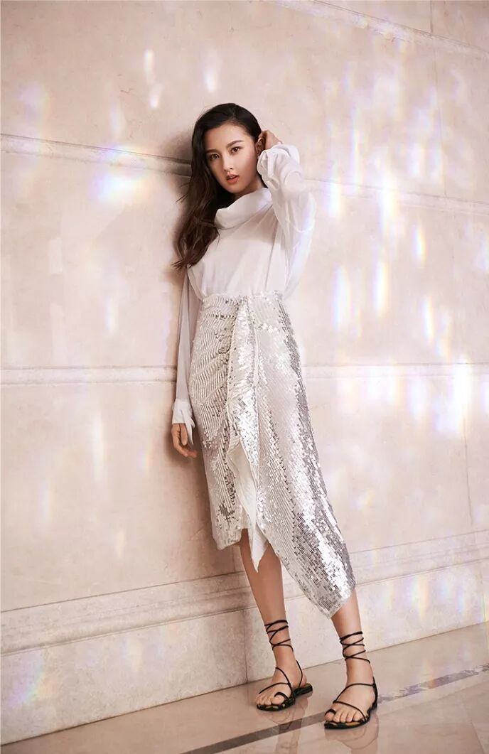 及膝闪片不规则裙,适当的露一点小腿加上纤细脚踝,在视觉上塑造臀部的曲线和纤细苗条的腿部线条,优雅而利落,不仅为你的气质加分,还能搭出时尚女人味。